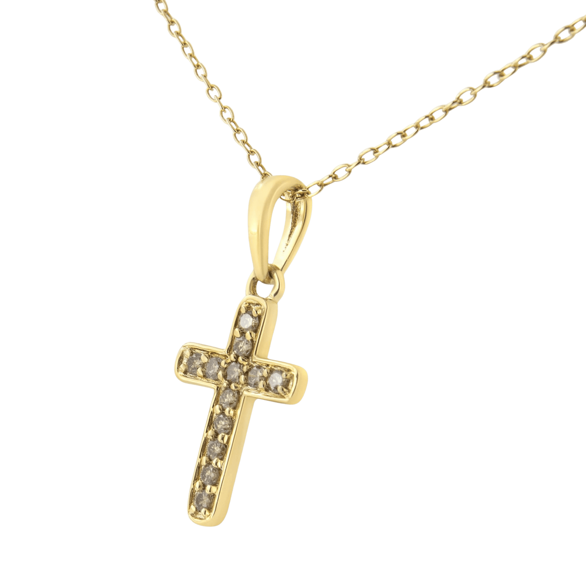 925 Sterling Silver 10K Yellow Gold Plated Cross Pendant Necklace